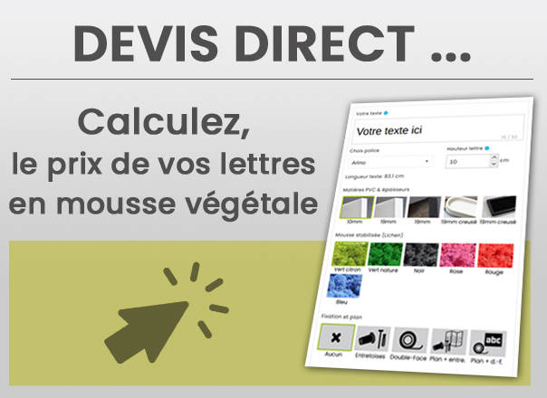 Nous réalisons des lettres végétales ou des formes sur-mesure avec de la mousse végétale stabilisée sans entretien !